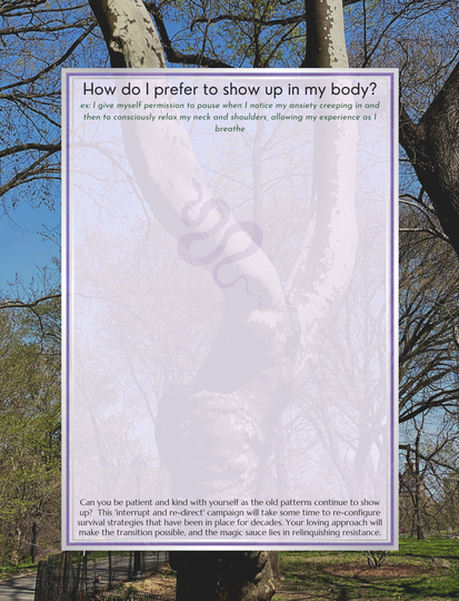 UPLEVEL Self Healing for Mothers is a comprehensive program offering healing practices and prompts to deeply nourish you—body, mind and soul. Explore the ways your nervous system has wired itself for survival throughout your being as you introduce new patterns that align with your passions and purpose. This book is entirely for YOU as a multi-faceted, evidence based approach to remembering and reclaiming your powerful, wild wholeness. Coincidentally, this is the best thing you could do for your family. A full course within a workbook, UPLEVEL includes over four hours of video links, including a mini-course in Emotional Freedom Techniques (aka EFT Tapping), several guided meditations, chanting, and other audiovisual content that brings these pages even more to life.